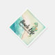Aquarelle rêve de la vie de plage d'eau salée : vagues sable et rivage. Décoré avec un cheval de mer à imaginaire fleuri et votre texte personnalisé.