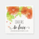 Cheers to Love en écriture cursive calligraphie de style manuscrit et oranges fleurs mariage de automne papier napkin. Il comprend de jolies fleurs oranges avec des feuilles verts et votre texte.