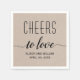 Bravo pour l'élégante et moderne serviette en papier mariage rustique style kraft. Il présente l'expression "Cheers to love" dans un script cursif texte manuscrit calligraphie style.
