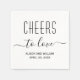 Bravo pour l'amour élégant et moderne serviette en papier mariage. Il présente l'expression "Cheers to love" dans un script cursif texte manuscrit calligraphie style.