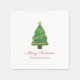 Des serviettes en papier avec un sapin de Noël et ses guirlandes, ses boules et son étoile au sommet, dans un style dessin animé. Vous pouvez les utiliser pour votre dîner ou repas de Noël !