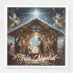 Cette belle et festive crèche s'ajoute parfaitement à votre décor de Noël. L'oeuvre présente la Sainte Famille, Marie, Joseph et le bébé Jésus, entourés d'anges et de bergers en adoration. La scène est placée sur un fond d'étoiles scintillantes et d'une étoile brillante, symbolisant la naissance du Christ. Cette image intemporelle est un rappel du vrai sens de Noël. Image générée par AI
