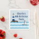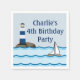 Des serviettes de cocktail personnalisées pour l'anniversaire des enfants avec la scène nautique numérique d'un voilier naviguant dans un océan ondulé passaient devant un phare rayé.