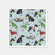 Les mignons Schnauzers de Noël avec sel et poivre et les manteaux noirs et argentés portent des chapeaux de Père Noël, des bois et des chandails de Jacquard sur un arrière - plan bleu avec des ornements épars.