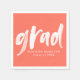 Ajoutez une touche personnalisée à votre fête de remise des diplômes avec des serviettes de remise des diplômes. Les serviettes de graduation en papier présentent de la "grade" en lettres peintes en blanc avec un arrière - plan de corail ou la couleur de votre choix. Personnalisez les serviettes de graduation corallienne en ajoutant le nom du diplômé et l'année de graduation.