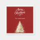 Un arrière - plan rouge et un texte blanc. Décoré d'un pin enneigé. Joyeux Noël est écrit avec un élégant script de style manuscrit. Personnalisez et ajoutez votre nom de famille