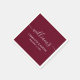 Serviettes en papier mariage bordeaux personnalisées avec une police de script moderne. Personnalisez facilement en ligne avec vos détails mariages. Articles assortis disponibles pour compléter ces serviettes en papier mariage rouge bordeaux minimaliste mais élégant.