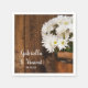 Ajoutez une touche de charme à la décoration de votre grange décontractée mais classe douche nuptiale ou mariage de ferme cocktail de réception avec le pittoresque seau en bois et marguerites blanches Country Mariage Papier Napkins. Ces serviettes jetables de style ranch western chic rustique et chic sont ornées d'une photographie florale d'un seau en bois rempli de fleurs blanches de marguerite et d'un arrière - plan en bois de grange brune.