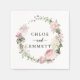 De belles roses roses rose vif se combinent avec des bourgeons blancs et des fleurs sauvages pour créer une couronne romantique. Les noms des couples mariages sont écrits au centre. Cette serviette en papier fait partie de la collection Summer Romance. Il contient de nombreux modèles do-it-yourself que vous pouvez utiliser pour personnaliser la papeterie mariage et votre cérémonie et réception. Vous devriez voir un lien vers cette page. Si vous ne voyez pas le lien ou si vous avez besoin d'aide pour un article, veuillez me contacter.