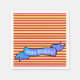 Ambiance estivale, rayures jaunes et roses - serviettes en papier d'anniversaire heureuses.