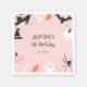 Cute halloween thème fille d'anniversaire serviette de soirée avec illustration de créatures et d'objets halloween.