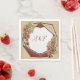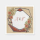 Doux couleur beurre chaud suède avec un cadre en cuir marron géométrique décoré de fleurs en cuir de crèmes, rouges et feuilles verts Pour personnaliser avec les initiales du couple mariage