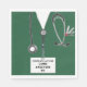 Serviettes de fête pour docteur créatives pour la remise des diplômes de l'école de médecine avec gommages d'hôpitaux verts, stéthoscope et drôle couteau suisse. Modifiez le texte pour ajouter le nom du médecin.
