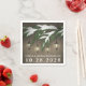 Serviettes de Mariage À feuillage persistant de neige rustique - design avec un arrière - plan en bois rustique avec lanternes pendantes d'une branche d'arbre à feuillage persistant recouverte de neige. Voir les produits correspondants dans cette conception trouvés dans la collection sur cette page.