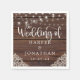 Rustic Wood String Lights Mariage dentelle table et Cocktail Napkins, avec un arrière - plan en bois rustique avec des cordes scintillantes de lumières et de la dentelle de style vintage dans les coins inférieurs. Ajoutez vos détails personnalisés pour un look rustique et chic !