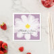 Serviettes de mariage en papier personnalisées avec fleur marguerite. Serviettes en papier chic avec couleur pourpre et design floral. Conception de la nature avec typographie stylisée de calligraphie. Faites vos propres serviettes de fête de classe unique avec le nom de la mariée et du marié plus la date du mariage. Couleur et monogramme arrière - plan personnalisables. Bel design pour les mariages romantiques, fête de mariée chic, soirée de réception country chic et barbecue de jardin en été. Aussi agréable pour fiançailles raffiné ou fête d'anniversaire sophistiquée si vous changez le libellé. Dîner et serviettes de cocktails Beverage.