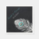 serviettes de mariage en papier personnalisées avec un paon sur tableau noir. Produits assortis également disponibles