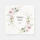 Autour d'un cadre hexagonal central, il y a des fleurs roses douces accentuées de feuilles verts et de petites fleurs blanches. L'agencement est symétrique, créant une apparence harmonieuse. L'arrière - plan blanche amplifie la beauté des détails floraux, ce qui rend le design charmant et raffiné. Personnalisez avec votre nom et votre date.