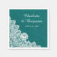 Ces serviettes en papier mariage minimalistes et élégantes, dotées d'une dentelle vintage blanche et fleurie sur un arrière - plan turquoise, sont parfaites pour votre fête de mariage rustique turquoise.