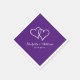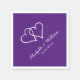 Serviettes mariages de coeurs violets royaux. Design élégant de symbole d'amour pour réception romantique. Couleurs personnalisables et noms personnalisés de la mariée et du marié plus la date du mariage. Aussi agréable pour fiançailles classe, douche nuptiale chic, barbecue de jardin ou fête d'anniversaire fantaisie. Stylish calligraphie typographie script et double coeur enclenché.