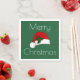 Serviettes de vacances avec chapeau de Père Noël et faux-pied, plus les mots "Joyeux Noël" - HAMbyWhiteGlove aka HAMbWG. Montré en vert avec un chapeau de Père Noël rouge.