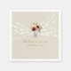 Elégante, moderne, rustique, en terre cuite et crème, serviettes mariages beige avec de belles fleurs d'aquarelle bordeaux en monogramme de pot en maçon, lumières à cordes et script de calligraphie tendance.