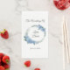 Cette serviette en papier mariage est présentée dans une belle aquarelle fleurie imprimé d'hydrangées bleues, le texte est montré dans une couleur gris ardoise. Customisez cet élément en modifiant l'exemple de texte et en y ajoutant vos informations. Image stock. vecteezy.com