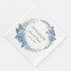 Cette serviette en papier mariage est montrée dans une belle aquarelle fleurie imprimé d'hydrangées bleues, texte est montré dans une ardoise couleur gris. Customisez cet élément en modifiant l'exemple de texte et en y ajoutant vos informations. Image stock. vecteezy.com