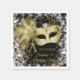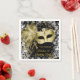Des serviettes de fête d'anniversaire masquées avec un élégant masque en plumes de bijou d'or sur un bel arrière - plan de bokeh. Ces serviettes de soirée en noir et or mascarade sont facilement customisées pour votre événement en ajoutant simplement vos détails dans le style de police, la couleur et le libellé de votre choix.