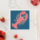 Image d'un homard rose corail sur des serviettes bleu foncé. Le motif préféré de fruits de mer estivaux est assorti à des assiettes en papier.