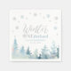 Ce design de serviette en papier présente une parties scintillant argentée et des flocons de neige bleu bébé et une typographie stylisée" Winter ONEderland" avec de beaux arbres d'hiver aquarelle. Les invitations et les fournitures de fête correspondants sont disponibles dans ma boutique BaraBomeDesign.