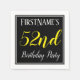 Cette conception simple et élégante de serviette en papier comporte un message comme "la 52e fête d’anniversaire de FirstName", avec le "52e" en texte de couleur jaune, dans une zone carré de couleur noire avec un contour de bordure simple. Un nom personnalisé peut être utilisé. Des serviettes comme celles-ci pourraient peut-être être utilisées à une fête d'anniversaire pour quelqu'un qui célèbre son cinquante-deuxième anniversaire. [~Z0000150]