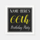 Cette conception simple et élégante de serviette en papier comporte un message comme "Nom-Voici 66e anniversaire", avec le "66e" en texte jaune raffiné, dans une zone carré de couleur noire avec un contour de bordure simple. Un nom personnalisé peut être utilisé. Des serviettes comme celles-ci pourraient être utilisées à une fête d'anniversaire pour quelqu'un qui célèbre son soixante-sixième anniversaire. [~Z0000150]