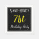 Cette conception simple et élégante de serviette en papier comporte un message comme "Name-Here’s 71st Birthday Party", avec le "71st" en texte jaune soigné, dans une zone carré de couleur noire avec un contour de bordure simple. Le nom peut être customisé. Des serviettes comme celles-ci pourraient peut-être être utilisées à une fête d'anniversaire pour quelqu'un qui célèbre son soixante-et-onze anniversaire. [~Z0000150]