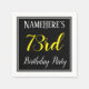 Cette conception simple et élégante de serviette en papier comporte un message comme "NameHere’s 73rd Birthday Party", avec le "73rd" en texte jaune raffiné, dans une zone carré de couleur noire avec un contour de bordure simple. Un nom personnalisé peut être utilisé. Des serviettes comme celles-ci pourraient peut-être être utilisées à une fête d'anniversaire pour quelqu'un qui célèbre son soixante-treize anniversaire. [~Z0000150]