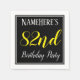 Cette conception simple et élégante de serviette en papier comporte un message comme "NameHere’s 82nd Birthday Party", avec le "82nd" en texte jaune raffiné, dans une zone carré de couleur noire avec un contour de bordure simple. Le nom peut être customisé. Des serviettes comme celles-ci pourraient peut-être être utilisées à une fête d'anniversaire pour quelqu'un qui célèbre son quatre-vingt-deuxième anniversaire. [~Z0000150]