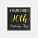 Cette conception simple et élégante de serviette en papier comporte un message comme "AnameHere’s 90th Birthday Party", avec le "90th" en texte jaune raffiné, dans une zone de couleur noire carré avec un contour de bordure simple. Le nom peut être personnalisé. Des serviettes comme celles-ci pourraient être utilisées à une fête d'anniversaire pour quelqu'un qui célèbre son quatre-vingt-dixième anniversaire. [~Z0000150]