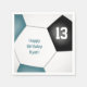 Ces serviettes en papier pour fêtes d'anniversaire sur le thème du football présentent l'image abstraite surdimensionnée d'une balle de football qui a des panneaux turquoises, noirs et blancs, sur lesquels vous pouvez customiser le texte - par katz_d_zynes