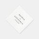 Ces serviettes de mariage simples mais élégantes sont parfaites pour placer sur vos tables mariages. Cette conception comporte une police serif élégante pour le titre, et une police italique simple et correspondante pour le texte du corps. Les couleurs affichées sont du noir solide. Ceux-ci, ainsi que les polices, peuvent être customisés entièrement à votre goût en cliquant sur le bouton "customiser". Si vous avez besoin d'autres articles correspondants, ou si vous avez des questions, n'hésitez pas à nous contacter.