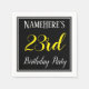Cette conception simple et élégante de serviette en papier comporte un message comme "NameHere’s 23rd Birthday Party", avec le "23rd" en texte jaune raffiné, dans une zone carré de couleur noire avec un contour de bordure simple. Le nom peut être personnalisé. Des serviettes comme celles-ci pourraient être utilisées à une fête d'anniversaire pour quelqu'un qui célèbre son vingt-troisième anniversaire. [~Z0000150]