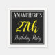 Cette conception simple et élégante de serviette en papier comporte un message comme "AnameHere’s 27th Birthday Party", avec le "27th" en texte jaune raffiné, dans une zone de carré de couleur noire avec un contour de bordure simple. Le nom peut être customisé. Des serviettes comme celles-ci pourraient être utilisées à une fête d'anniversaire pour quelqu'un qui célèbre son vingt-septième anniversaire. [~Z0000150]
