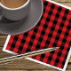 Ce design comprend une simple plaque en papier rouge noir avec un simple chèque en buffle de Noël, une ferme rustique de campagne minime, minimaliste motif de vacances festives, rouge et noir design, dîners déjeuners apéritifs, un style de à damiers simpliste créatif, fêtes de Noël amusantes, produits de papier de fête jetable sur mesure, rustique vers le nord mignon motif