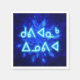 Un essaim de flocons de neige fractaux bleus. Texte en inuktitut "Kuvianak Innovia" (comprenant le mot anglais "Kuvianak Insulé") dans l'alphabet syllabique adopté au Nunavut, apparaît également en bleu et blanc éclatant. Les Inuit sont communément appelés Eskimo, mais ce terme est maintenant défavorable car on le considère comme péjoratif.