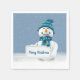 Un mignon bonhomme de neige en flocons de neige tenant un panneau blanc dans la neige. Le texte peut être modifié.