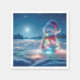 Un bonhomme de neige enveloppé de lumières colorées de Noël se dresse dans un champ enneigé sous un ciel étoilé