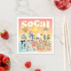 Une scène lumineuse et colorée offre une vue spectaculaire de la Californie du Sud - personnages farfelus sur la plage et le désert de SoCal présentant les parcs de Los Angeles, Orange County, San Diego, Père Noël Barbara, Riverside, Palm Springs, El Centro, Salton Sea, Anza Borrego et Joshua Tree ainsi que les villes frontalières de Tijuana, Tecate et Mexicali. Cette charmante scène a tout - un surfeur pend dix tandis qu'un orque saute de l'eau, des animaux de zoo accueillent les touristes, les amateurs de vin font un toast comme un randonneur est remarqué par un OVNI et bien plus encore...