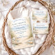 A soft coastal design featuring an elegant oval wreath composed of seashells, oysters, starfish, sea glass, and delicate dune grasses. Neutral sandy tones blend beautifully with muted blue accents, creating a refined seaside aesthetic that feels airy and sophisticated. The warm ivory background enhances the natural textures while keeping the layout clean and graceful. Perfect for a beach-inspired celebration with timeless, understated charm.