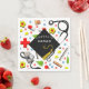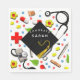 Des serviettes de fin d'études secondaires de l'école de soins infirmiers mignonnes avec des fournitures médicales uniques, bonnet de graduation noir et or et des fleurs. Pour personnaliser modifier le texte pour ajouter le nom de l'infirmière diplômée.