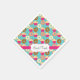 Cette serviette en papier présente un cupcake et un motif de beignes sur un arrière - plan bleu turquoise. Un cadre tourbillonnant blanc avec une bordure rose vif près du fond de la serviette a un texte personnalisable qui dit : Sweet Traitements.