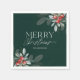 Des serviettes de Noël modernes ornées d'élégantes verdure d'hiver et de baies sur un arrière - plan vert foncé. Le design présente une typographie de texte élégante.